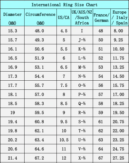 This is a chart that will be helpful for you to choose the right size. You can either make use of a tape or a small piece of string to help.